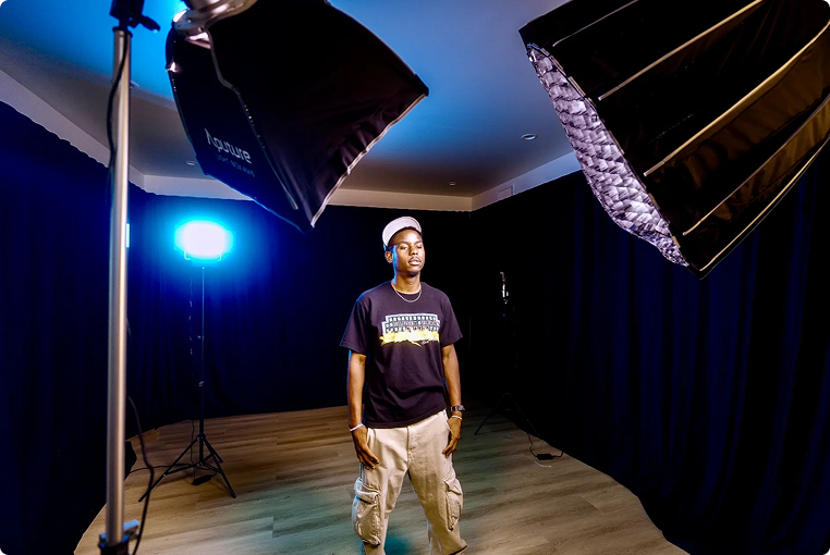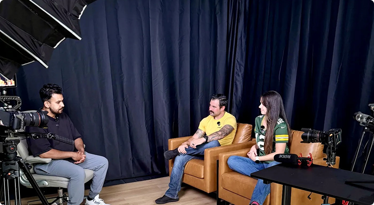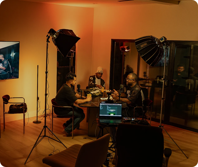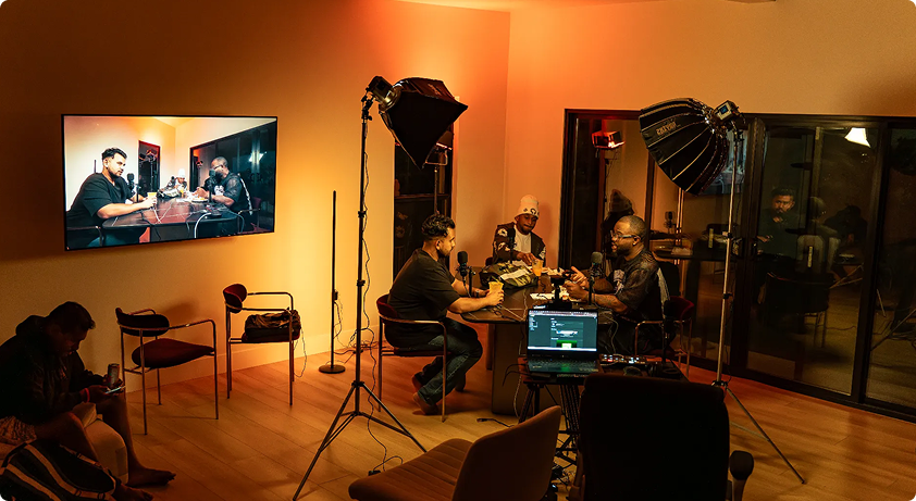 Professional video, podcast, and photography sessions across multiple dedicated stages and settings.