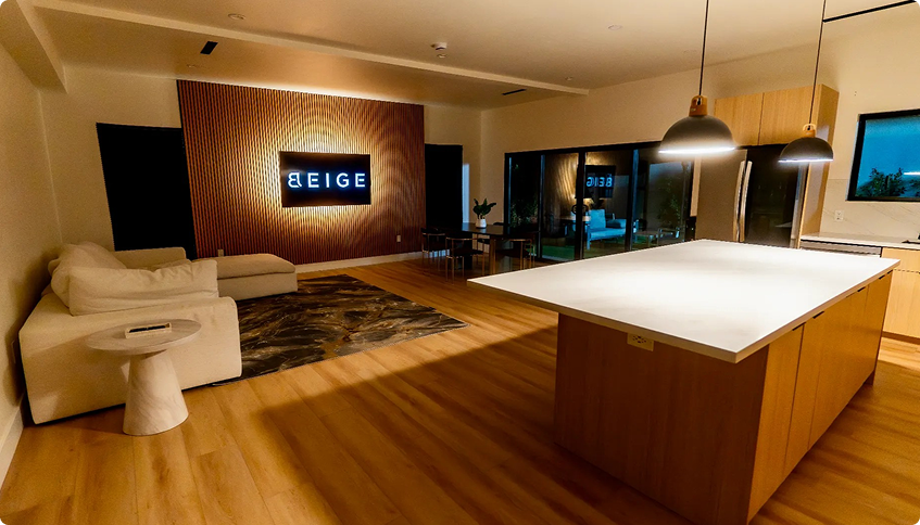 Fireside chats, commercial kitchen setups, and lifestyle areas designed for authentic, engaging content creation.